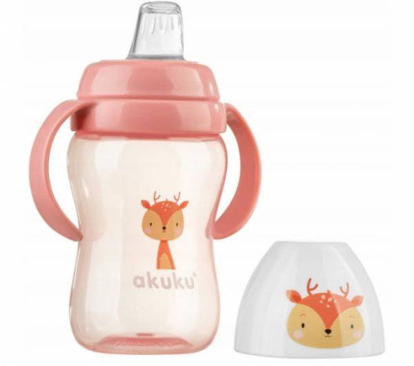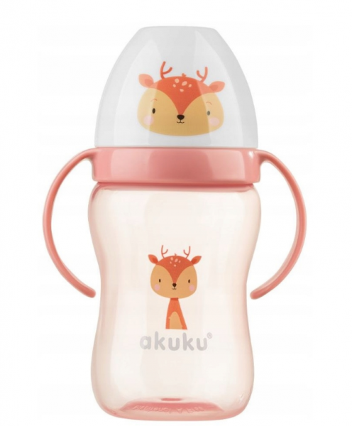 Lahvička/hrneček s úchyty a silikonovým náustkem Srneček Akuku 240 ml, růžový