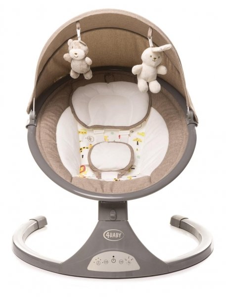 Lehátko/houpačka pro kojence s plyšovými hračkami.