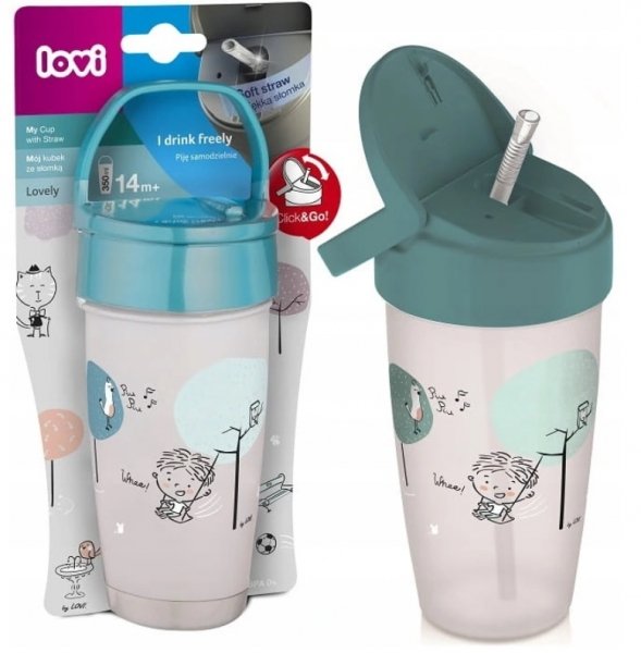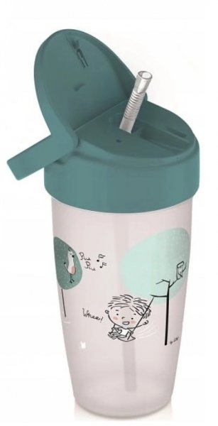 Lovi hrneček se slámkou Lovely Boy - Junior, 14m+, šedá/tyrkysová, 350ml