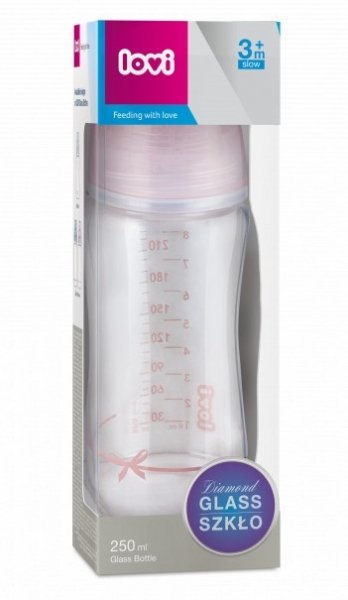 Nová, lehká lahvička o objemu 250 ml z kolekce Baby Shower je vyrobena z diamantového skla. Láhev disponuje dynamickou silikonovou savičkou LOVI, díky které povzbuzuje dítě k aktivní činnosti během sání, stejně jako u kojení a nenarušuje tak sací reflex miminka.