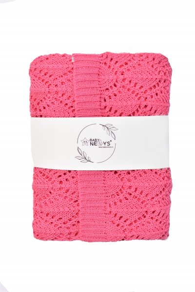 Luxusní bavlněná háčkovaná deka, dečka. ažurková LOVE, 75x95cm - malinová