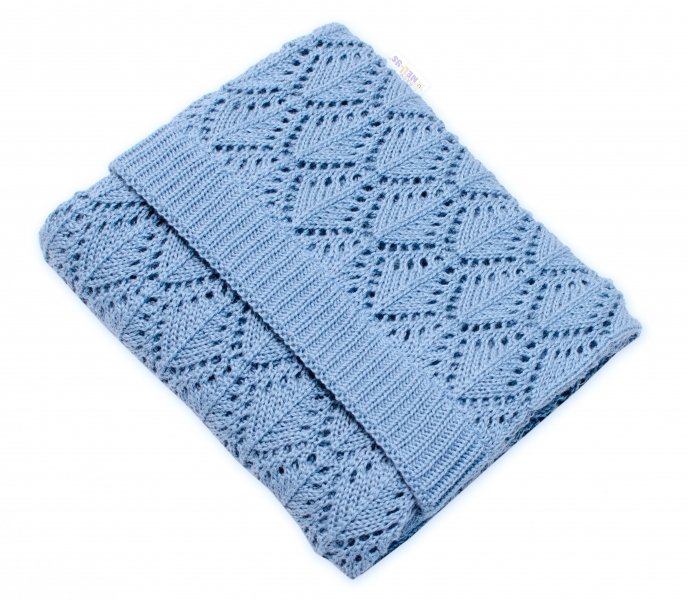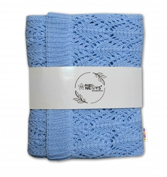 Luxusní bavlněná háčkovaná deka, dečka. ažurková LOVE, 75x95cm - modrá