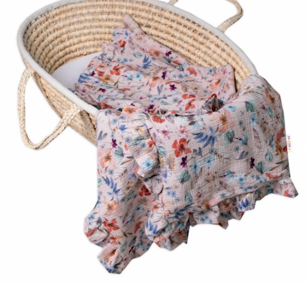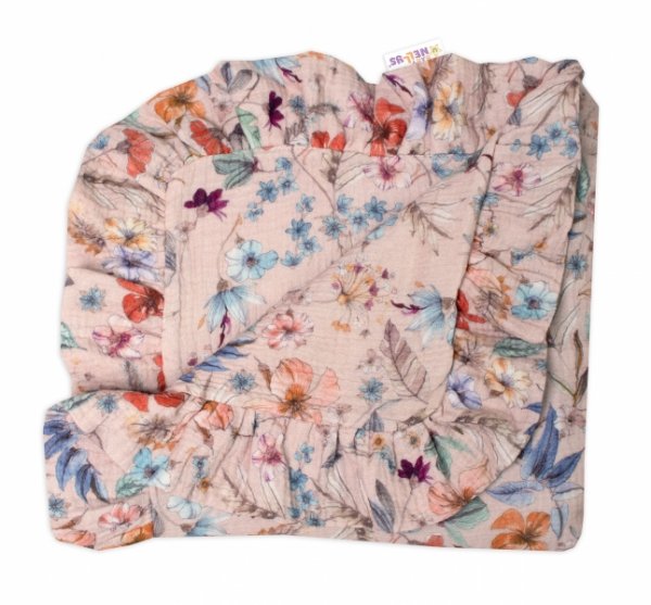 Luxusní dvouvrstvá mušelínová deka s volánky, Květy, Baby Nellys 120 x 120 cm, pudrová