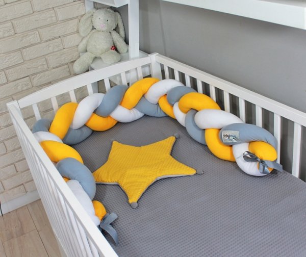 Pletený cop je moderní alternativou tradičního nebo polštářového mantinelu. Každý pramen je vyroben z nejkvalitnějšího strečového a měkkého bavlněného materiálu a antialergické výplně. Jsou ručně pletené.