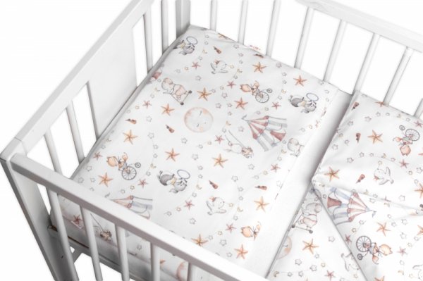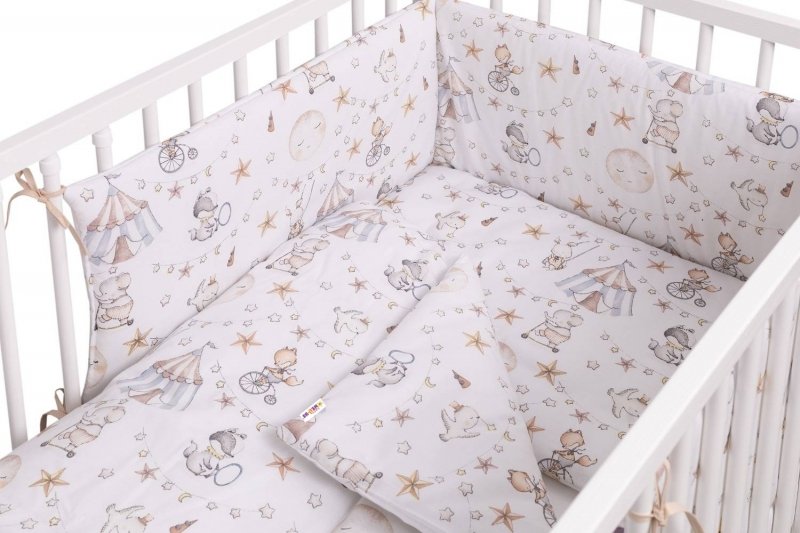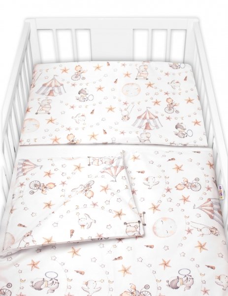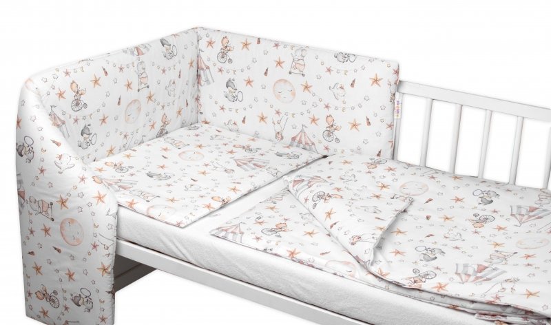 Mantinel s povlečením, bavlna, 3D sada, Cirkus, Baby Nellys, bílá/béžová - 120x90