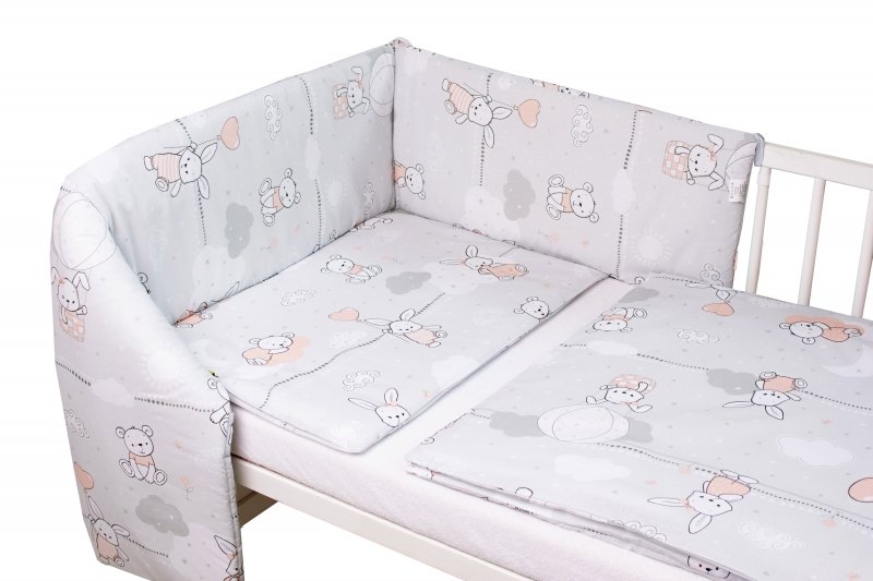 Mantinel s povlečením Premium, Baby Nellys, 3D sada, Good night Animals, šedé, 135x100 cm - 135x100