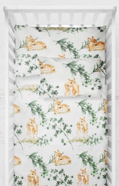 MBaby 3-dílná sada peřinka + 2 polštářky s výplní, Srnka, bílá