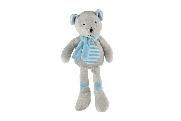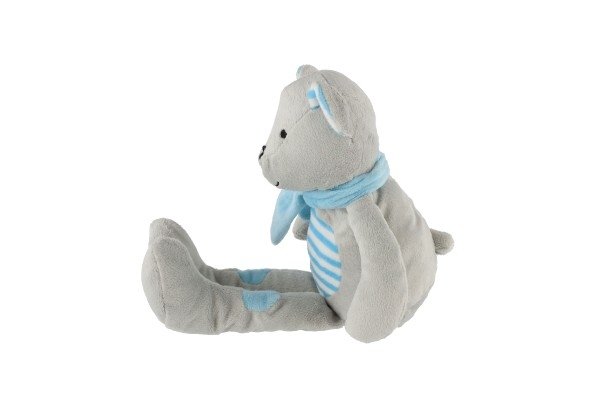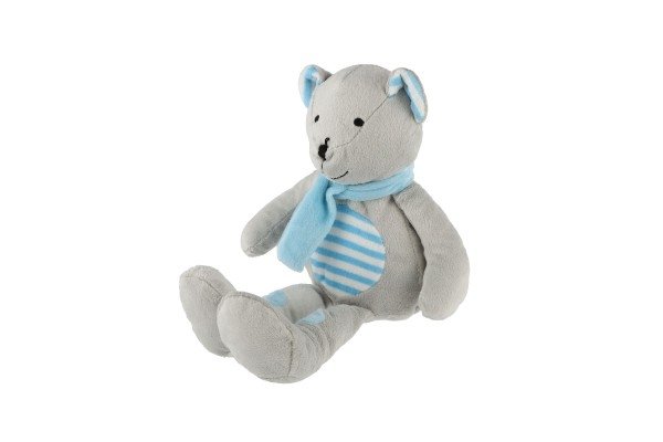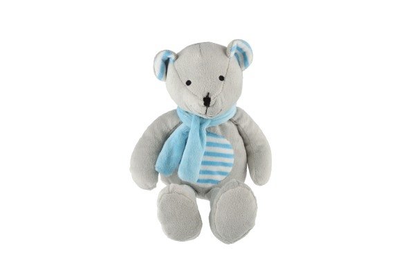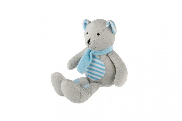 Medvěd/Medvídek sedící se šálou plyš 19cm šedivo-modrý v sáčku 0+
