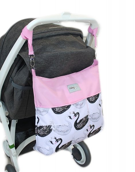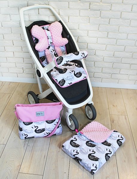 Mega sada do kočárku s taškou na kočárek - Labutě - růžová, Ce19