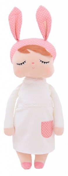Metoo Hadrová panenka XL s oušky v bílých šatičkách, 70cm