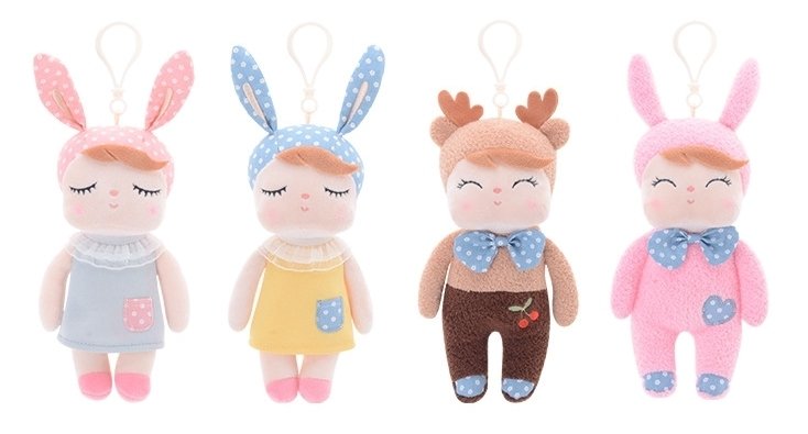 Panenka je světlá, má plastový přívěšek na hlavě, což dětem usnadňuje nošení. Nebo ji můžete připevnit ke kočárku nebo dětské postýlce.