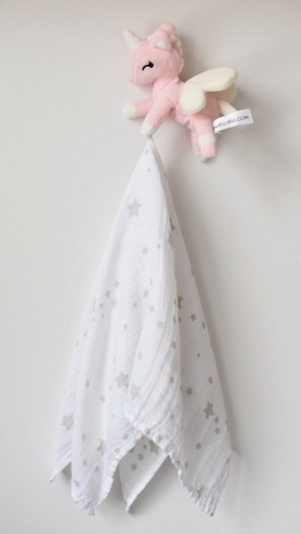 Plyšový jednorožec Metoo s mušelínovou plenkou, 12cm.