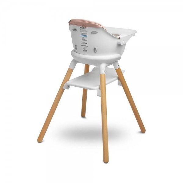 Bravo lze využít mnoha způsoby: s funkcí vysoké židle, nízkého sedáku a taburetu (vysokého i nízkého). Má dvě úrovně nastavení opěrky nohou (16 cm a 24 cm) zajišťující pohodlí pro starší děti. Při krmení profilovaný tác zajistí, že se nic nevysype na podlahu, čalounění z ekokůže a plastové sedátko usnadňují rychlé a pohodlné čištění. Stabilitu zajišťují čtyři nohy celé z masivního dřeva.
