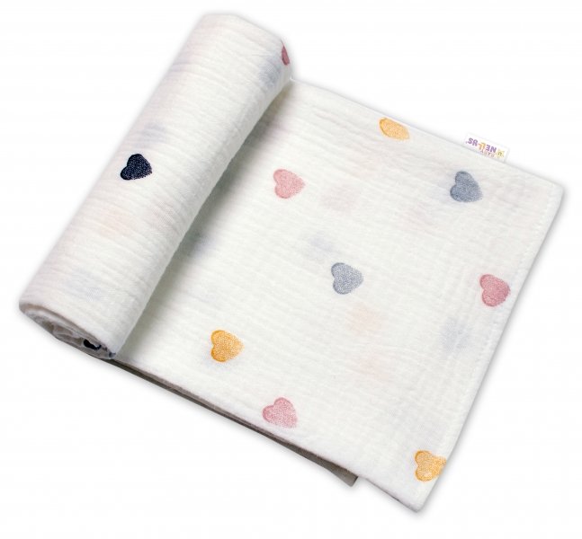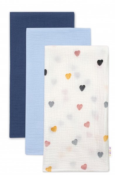 Mušelínové luxusní pleny, sada 3ks Srdíčko BOY, 65 x 65 cm, Baby Nellys, modré