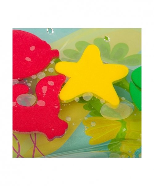 Uvnitř je 5 barevných vodních živočichů, která se pod tlakem dítěte budou pohybovat v prostoru naplněném vodou. Tento produkt se velmi snadno čistí, stačí jej otřít navlhčeným hadříkem a je připraven ke hře.