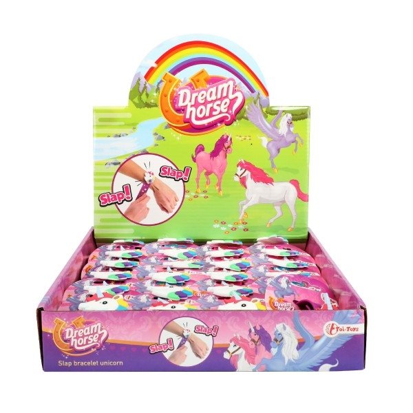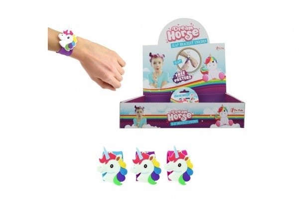Náramek jednorožec samonavíjecí plast 21cm 3 barvy na kartě 24ks v boxu