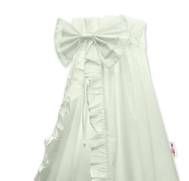 Bavlněná nebesa s volánkem a mašlí zaručeně ozdobí každou dětskou postýlku nebo kolébku.