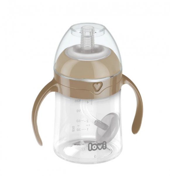 Nevylévací hrníček s brčkem a závažím Lovi Straw Cup, 150 ml, hnědý