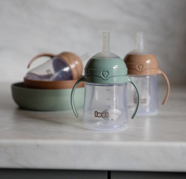Nevylévací hrníček s brčkem a závažím Lovi Straw Cup, 150 ml, zelený