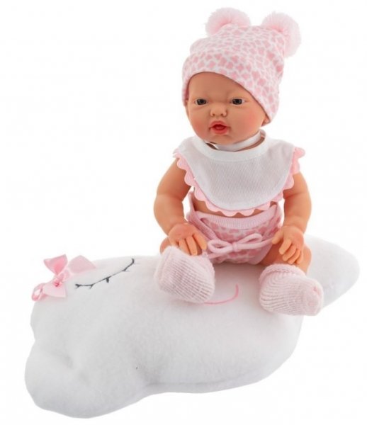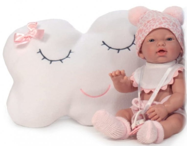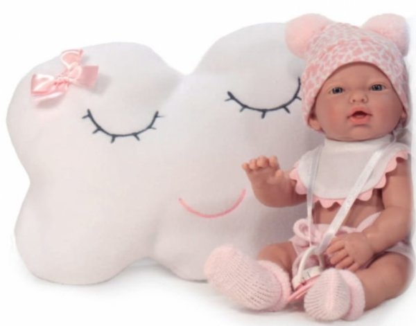 Originální gumová panenkas dudlíkem. Má krásné oblečení a jemně voní po vanilce. Dodává se s polštářkem ve tvaru mráčku. Perfektní dárek pro každou malou holčičku. Baleno v dárkové krabičce.