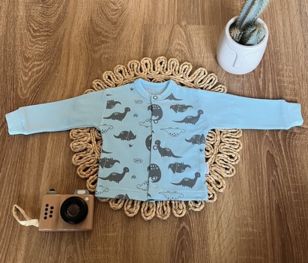 Novorozenecká bavlněná košilka, kabátek, Mamatti, Dino park - modrá s