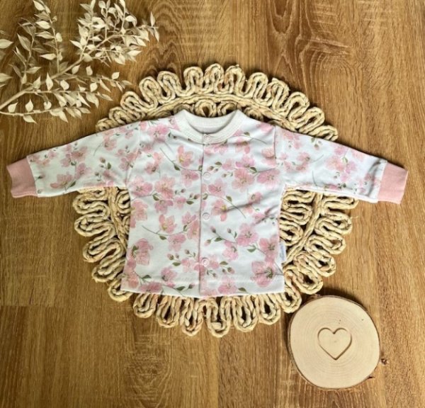 Novorozenecká bavlněná košilka, kabátek, Mamatti, Květy višní