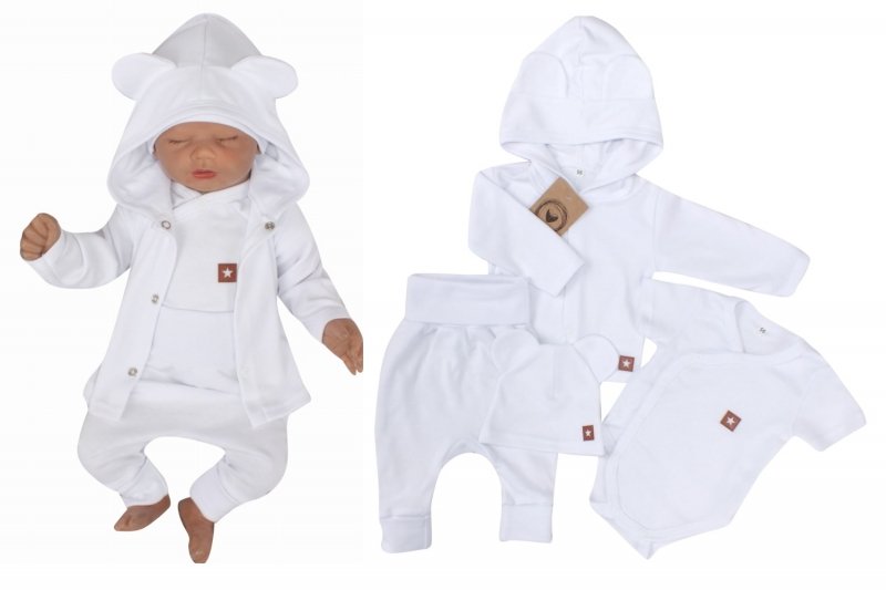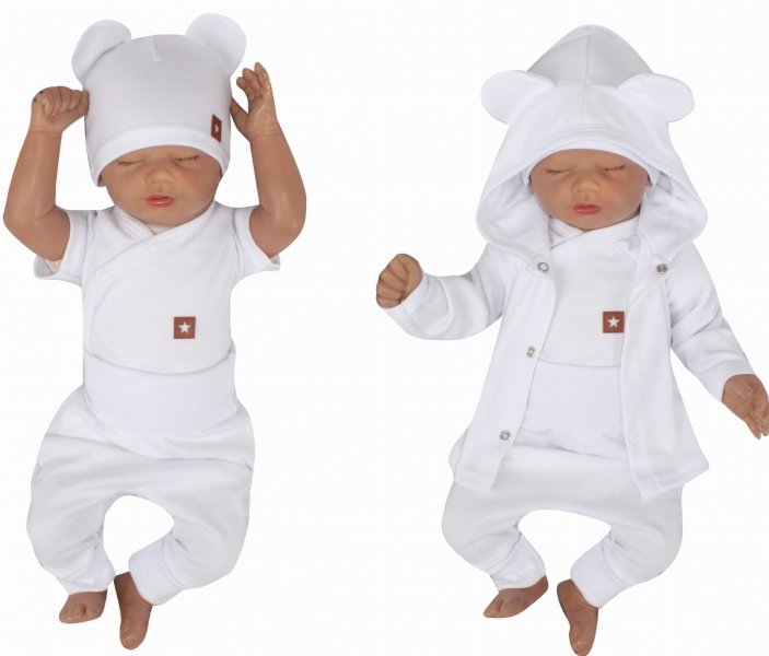 Novorozenecká sada 4D, body kr. rukáv, tepláčky, kabátek a čepička Z&Z