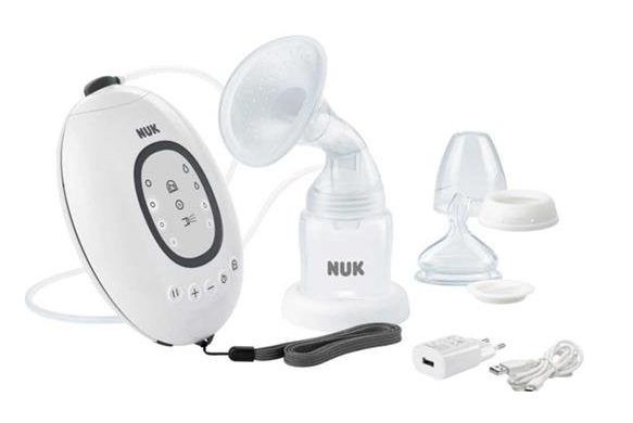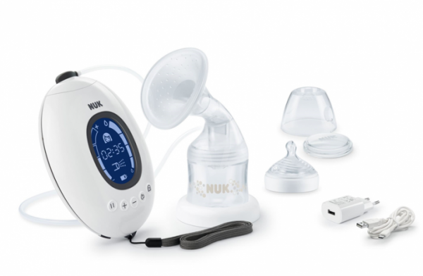 - elektrická prsní pumpa s nabíjecí baterií, měkkou silikonovou přísavkou a ergonomicky tvarovaným prsním nástavcem - pro snadné odsávání mateřského mléka