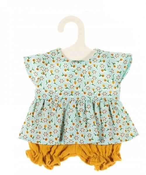 Oblečky pro panenky, tunika a kraťasky, Mirabelky Alimi, mátová/hořčicová