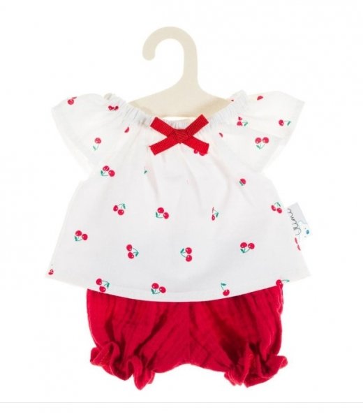 Oblečky pro panenky, tunika a kraťasky, Třešně Alimi, bílá/červená