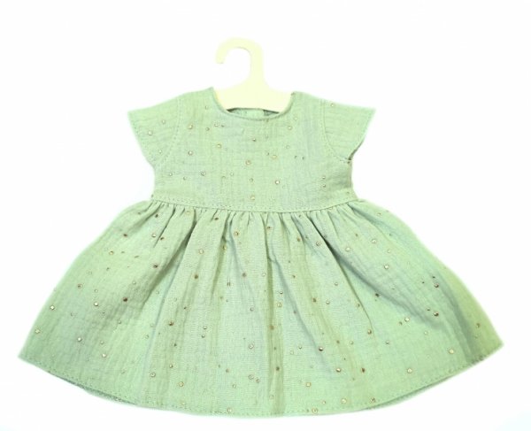Dlouhé šatičky po kolena panenky z jemného bavlněného mušelínu v barvě máty se zlatými tečkami rozesetými jako hvězdičky na nebi :-)