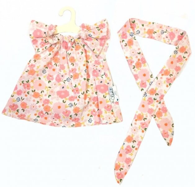 Oblečky/šatičky pro panenky s čelenkou, bavlna, Kytičky, růžové