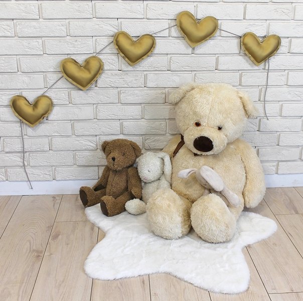 Sada obsahuje: ozdobnou šnurku v délce cca 250 cm, 5ks ozdobných srdíček - výška srdíčka cca 18cm.