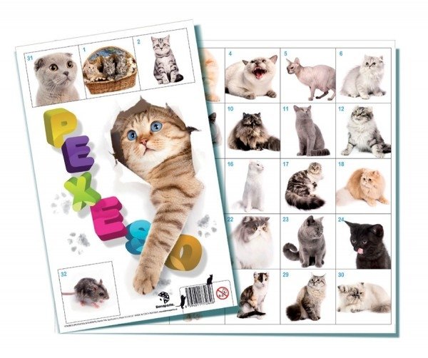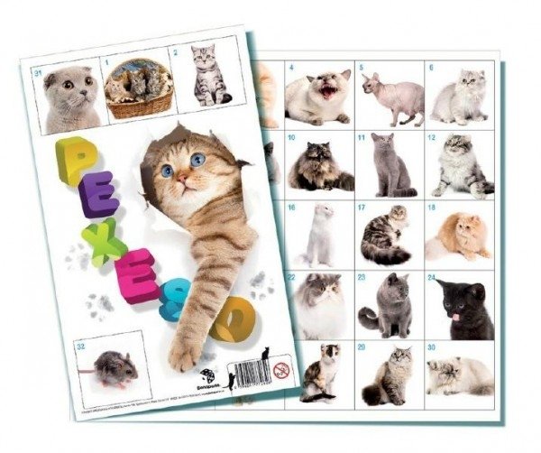 Pexeso Kočky společenská hra 32 obrázkových dvojic.