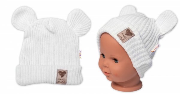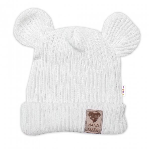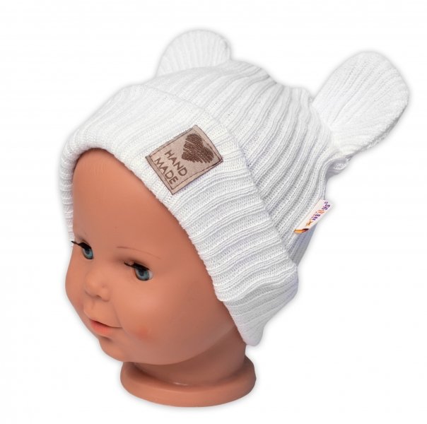 Pletená bavlněná čepice s oušky, dvouvrstvá, Hand Made Baby Nellys