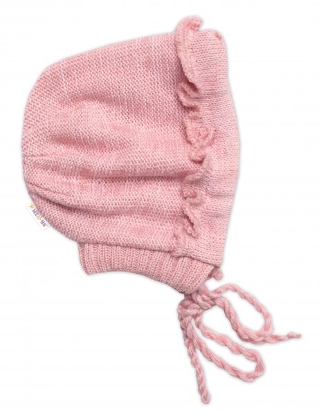 Pletená čepička na zavazování bonetka Girl, Hand Made Baby Nellys, pudrová, růžová - 56-62 (0-3m)