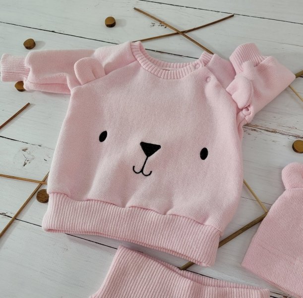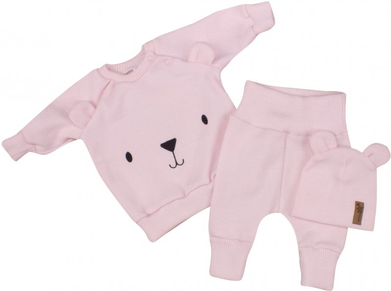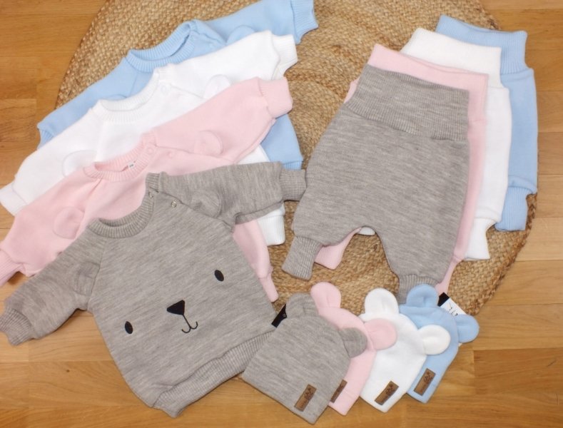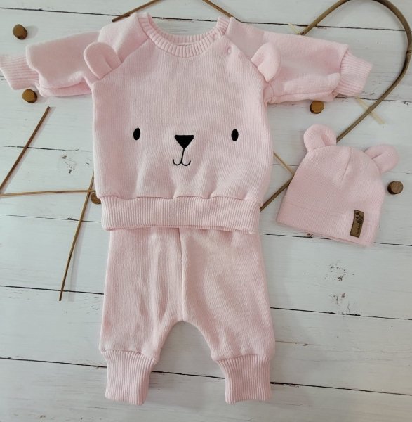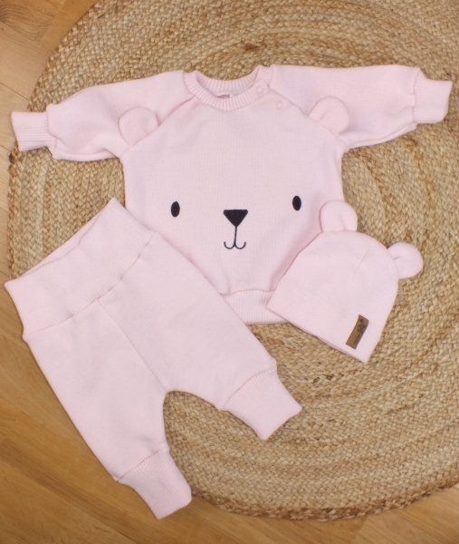 Pletená kojenecká sada 3D Medvídek, svetřík, tepláčky + čepička Kazum