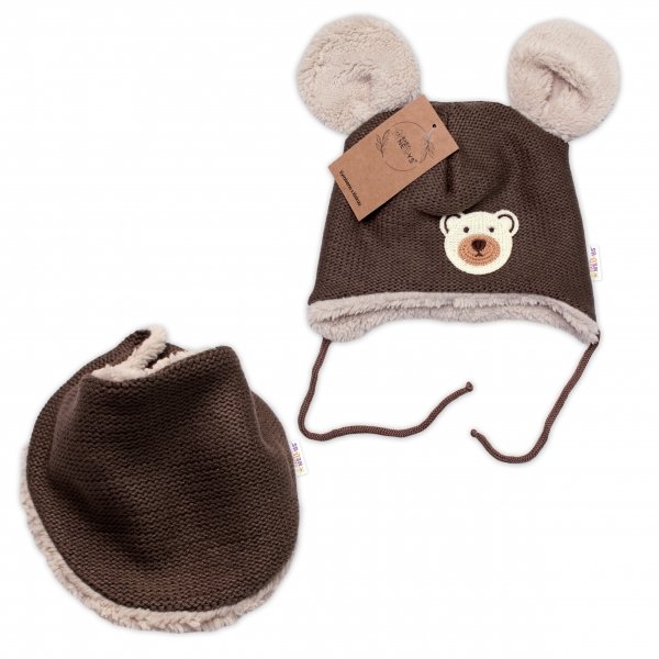 Pletená zimní čepice s kožíškem a šátkem Teddy Bear, Baby Nellys