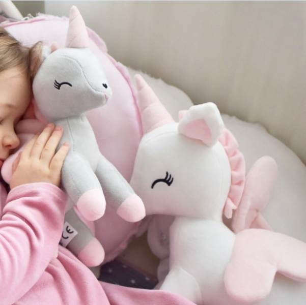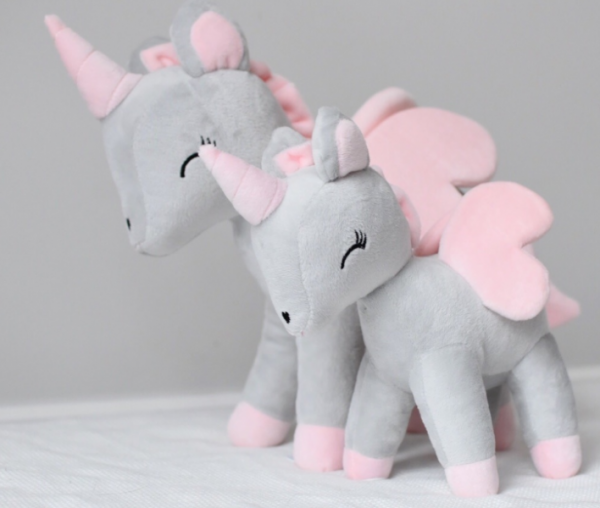 Měkký a plyšový materiál, křídla a nos ve tvaru srdce a "usmívající se" oči jsou zvláštnosti tohoto jednorožce.