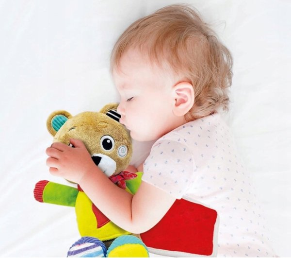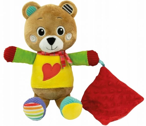 Sladký, mazlivý medvídek. Měkký a bezpečný kamarád, stvořený k mazlení. Deka je ideální pro zachycení pachu rodičů pro uklidnění miminka. Různé prémiové tkaniny a zvrásněné uši pro podporu vývoje smyslů. 100% prát v pračce.