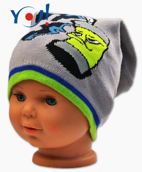 Podzimní čepička YO ! Grafitti - tm.šedá/zelený lem - 52 čepičky obvod/54 čepičky obvod