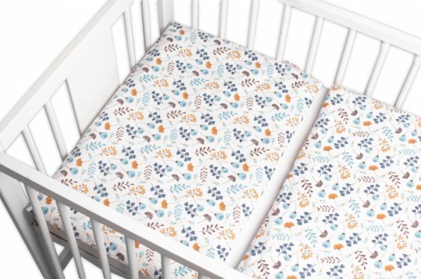 Povlečení do postýlky, 2D sada flanel - Louka, Baby Nellys, modrá/bílá - 120x90