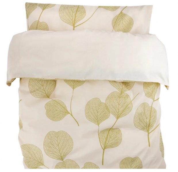 Krásný, jemný listový design na přední straně ložního prádla zve ke snění. Zadní strana ložního prádla je bez potisku.
