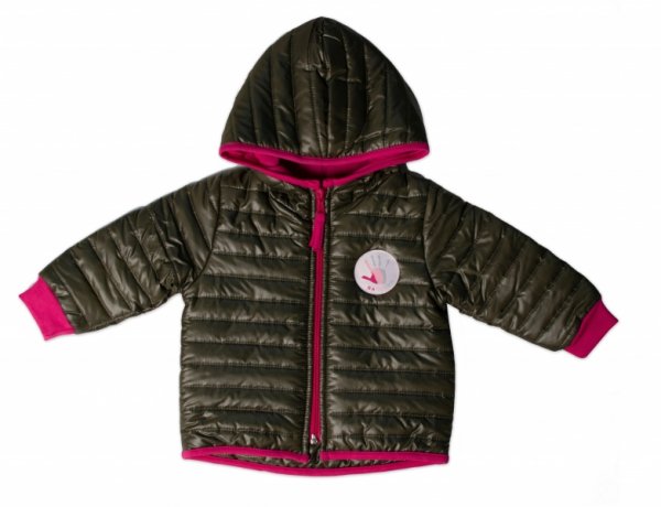 Přechodová prošívaná bunda s kapucí - olivová/růžová - 68 (3-6m)