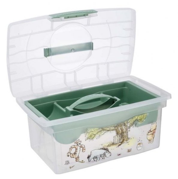Přenosný box s organizérem Medvídek Pú a přátelé Keeeper, transparentní/zelená