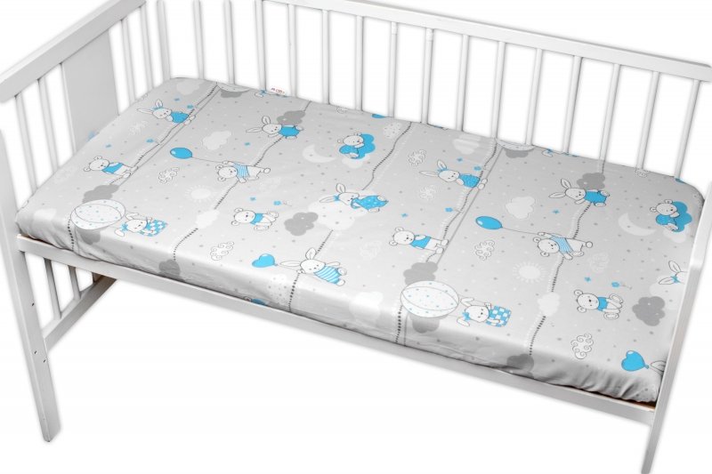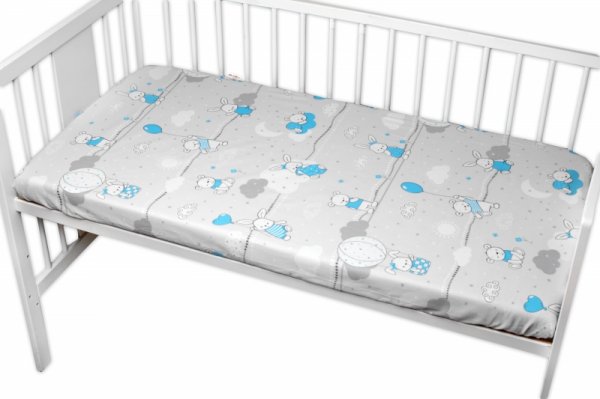 Prostěradlo do postýlky bavlna Premium Baby Nellys, Good night Animals BOY, šedé/modré - 120x60