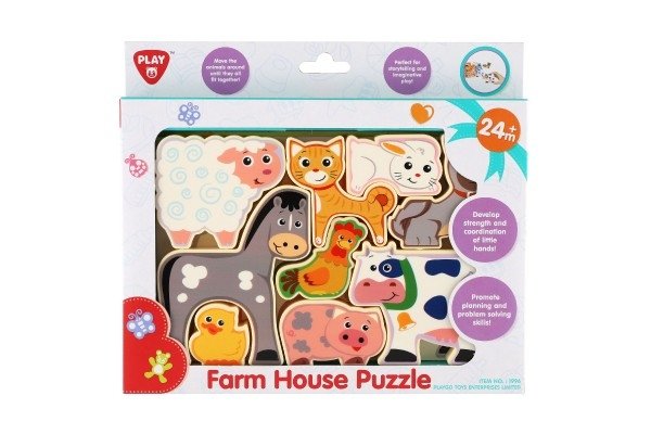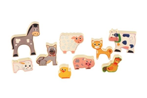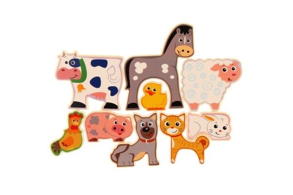 Přesouvejte zvířátka tak, aby do sebe všechna pěkně zapadla. Dětem pomůže předloha. S dílky zvířátek z farmy (9 ks) si děti mohou hrát i samostatně.