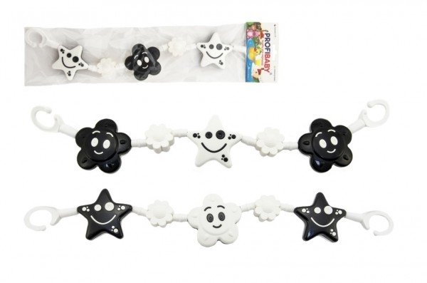 Řetěz/zábrana kytička,hvězdička plast 45cm černobílá v sáčku 0+