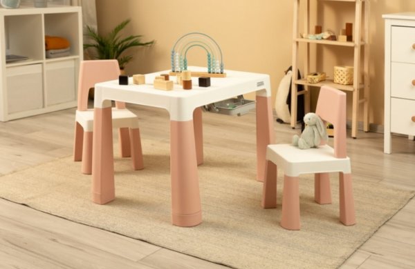 Monti je všestranný dětský stůl se židlemi. S jeho pomocí si snadno vytvoříte koutek pro uměleckou práci nebo hru doma i venku. Sada je vyrobena z kvalitního plastu - bezpečného a odolného vůči různým rozmarům počasí a divokým hrám. Stůl i židle jsou lehké, takže je dítě může přemisťovat samostatně.
