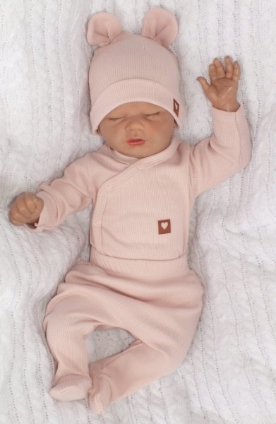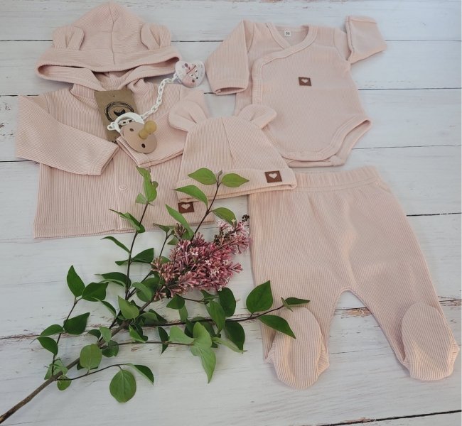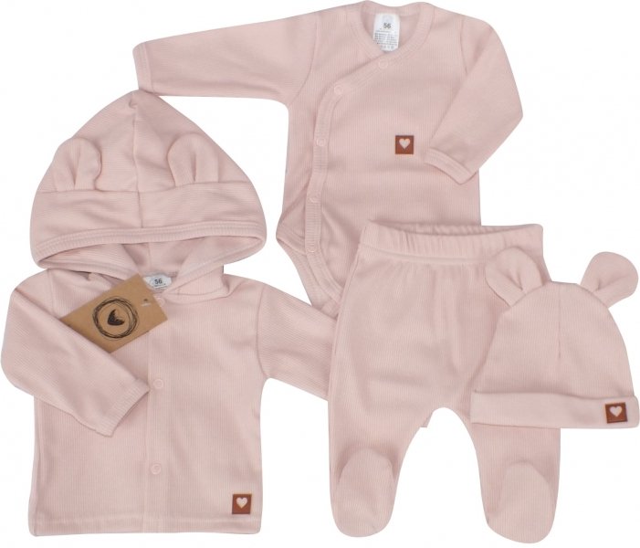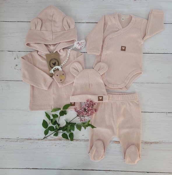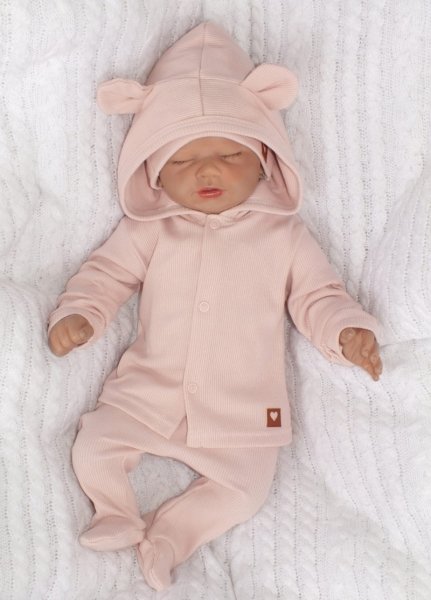 Sada do porodnice 4D, žebrovaná, body, polodupačky, kabátek a čepička, Z&Z, pudrová - 50 (0-1m)
